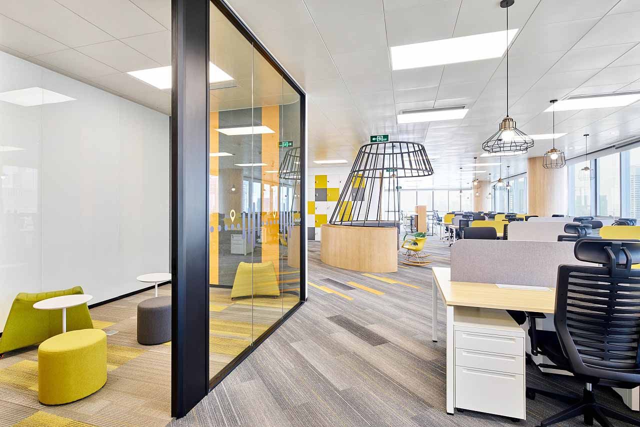 辦公室的裝修主要是傳遞出來公司的文化氛圍,以大灰白為底,再用大膽艷麗的色彩點綴,創建獨特的辦公環境。豐富的配色呈現出令人驚艷的視覺效果,營造出獨特藝術感染力和時尚大氣的空間氛圍,大膽用色,國際視角,簡約而不簡單。