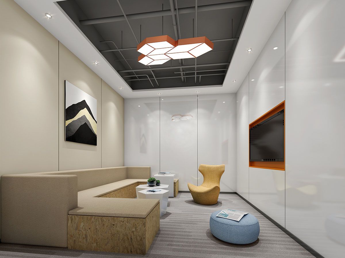 明暖的橙黃色穿梭在整個辦公空間,該項目的主題就是年輕時尚輕松,前臺白色天花散落的燈光,不同深淺程度的橙黃色,體現了創新孵化中心辦公室公司“舒適、時尚、健康”的服務指南,從而提高了品牌的親和力與附加值。以橙黃色元素貫徹整個設計思路,帶給人一種年輕活力,向前拼搏的感覺。